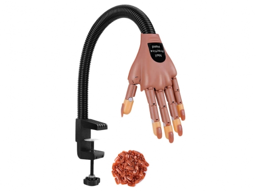 Plastová cvičná ruka s pohyblivými klouby a pohyblivým ramenem. Cvičná ruka je vhodná pro začínající i pokročilé manikérky. Díky pohyblivé ruce dokonale procvičíte pilování nehtů, nanášení gelů i odstranění gelů a gel laků. Ruka imituje přirozený pohyb zákaznice a lze ji snadno uchytit k pracovnímu stolu.