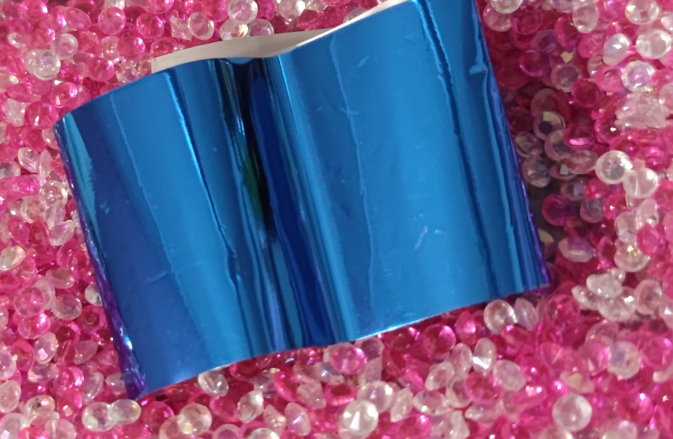 .Na vymodelovaný vybroušený nehet nanesete transfer foil gel, necháte lehce zaschnout, přiložite transfer fólií, přitlačíte a kopýtkem řádně přitlačíte a uhladíte, rychlým pohybem strhněte, na závěr použijte Quick Finish pro vysoký lesk.