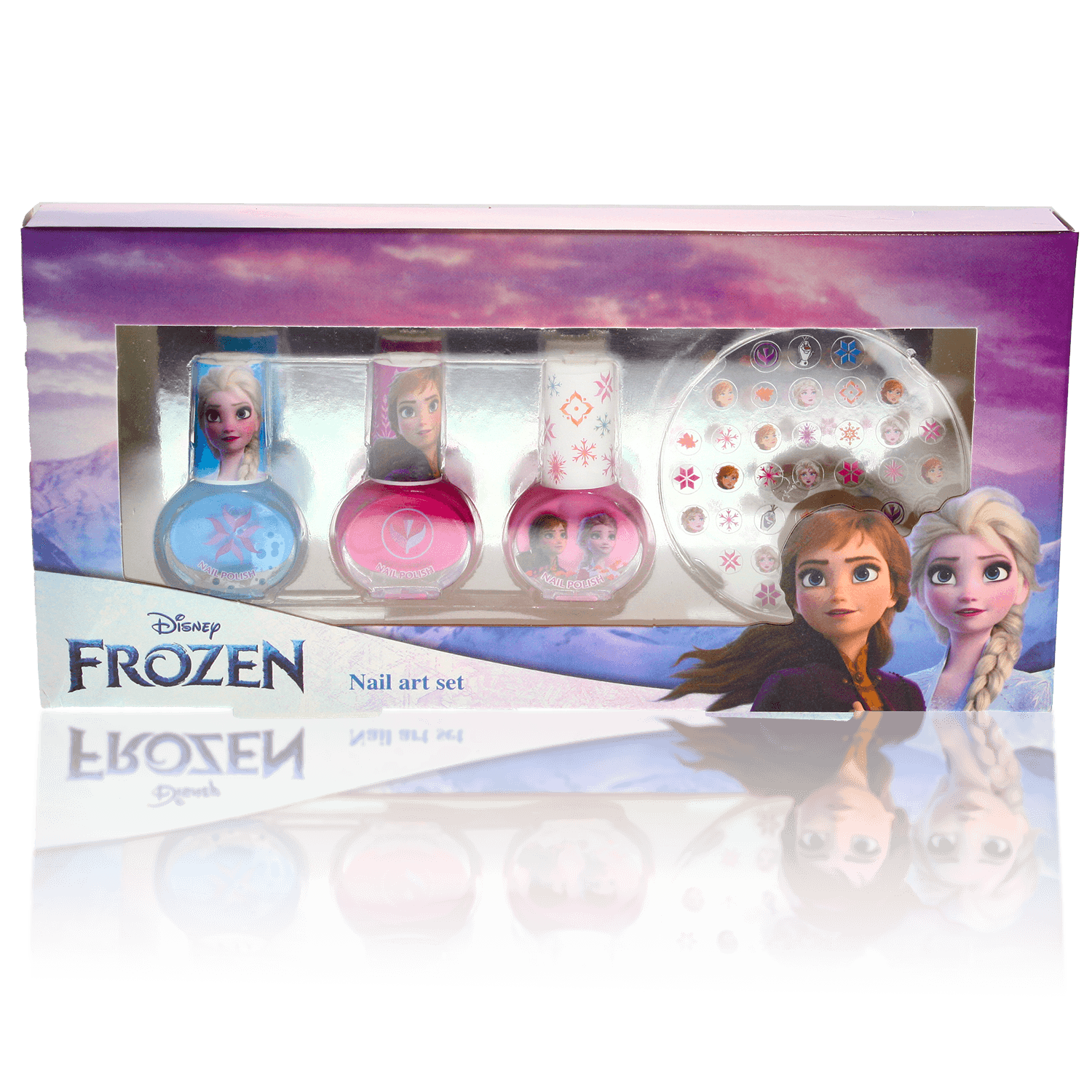 Frozen set na lakování nehtů pro velké parádnice, sada obsahuje 3 laky na nehty a samolepky na nehty.