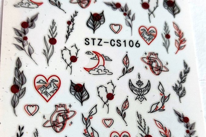 Vodotisk  Návod k použití: Vyberte design a vystřihněte vodolepku z listu. Vodolepku namočte do vody po dobu 3 sekund. Sejměte papírovou folii z vodolepky a jemně přiložte na požadované místo na nehtu. Vodolepku prstem…
