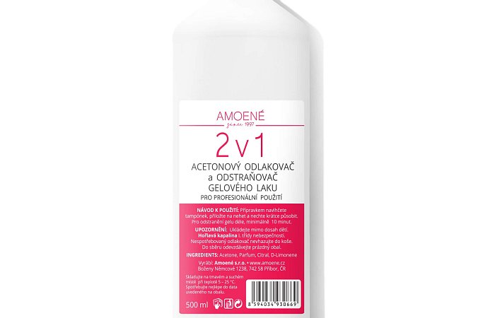2 v 1 - acetonový odlakovač a odstraňovač gelového laku - 500ml.