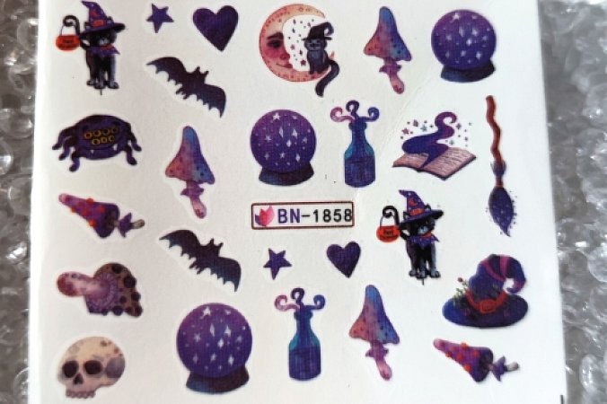 Vodotisk  Návod k použití: Vyberte design a vystřihněte vodolepku z listu. Vodolepku namočte do vody po dobu 3 sekund. Sejměte papírovou folii z vodolepky a jemně přiložte na požadované místo na nehtu. Vodolepku prstem…